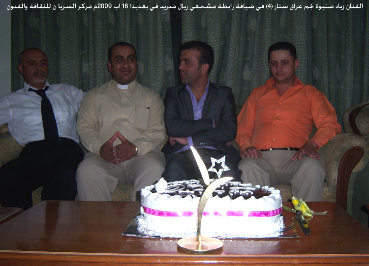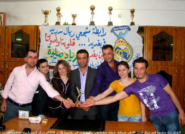 الفنان زياد صليوة في ضيافة رابطة مشجعي ريال مدريد استضافت رابطة مشجعي ريال مدريد في بغديدا (تشكيل شبابي جديد بارشاد الاب سامر حلاته) مساء اليوم فناننا المتالق زياد صليوه وتم قص كعكة المناسبة تعبيرا عن الفرحة الغامرة التي اثمرها باحرازه لنجم عراق ستار، وكان للرابطة دورا مهما في تحفيز الجماهير على التصويت وعملت بالتعاون مع دار مار بولس على عرض حفلات برنامج عراق الستار على الشاشة الكبيرة.