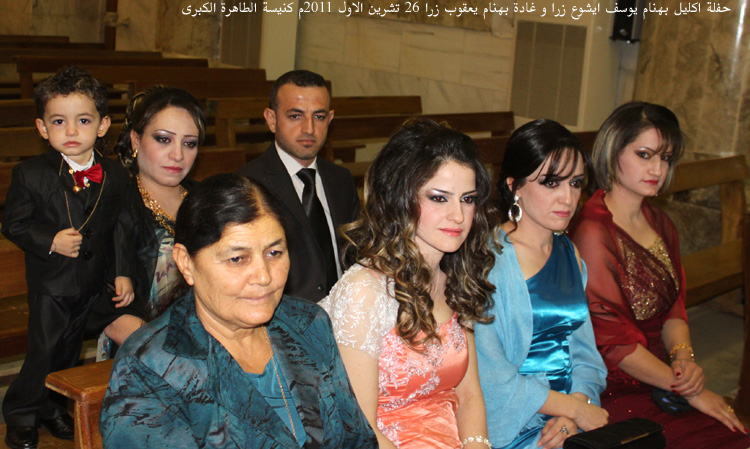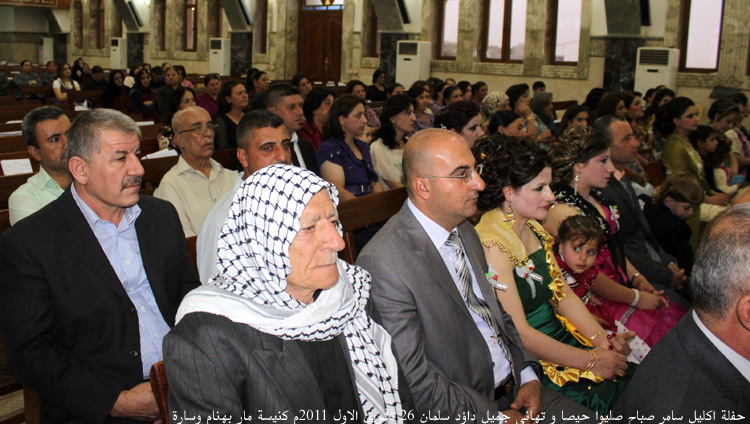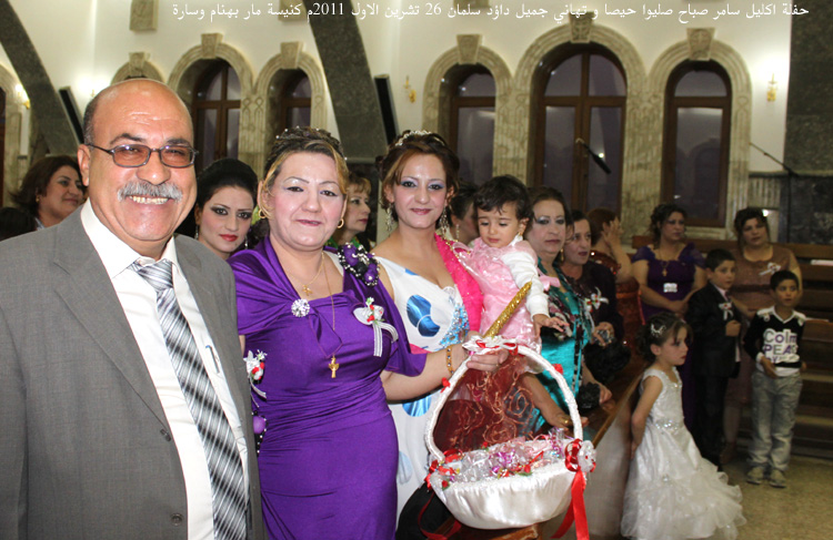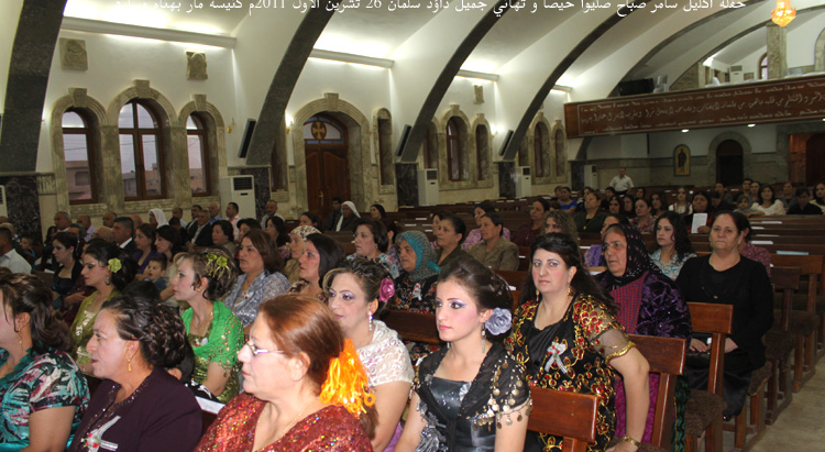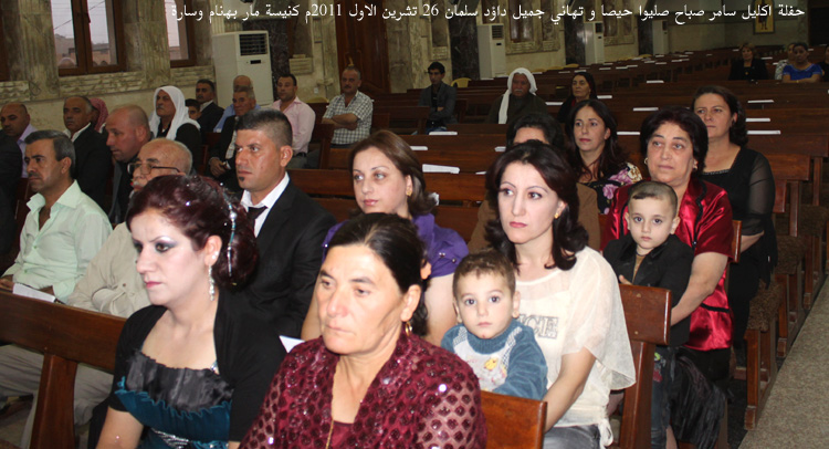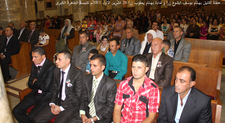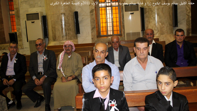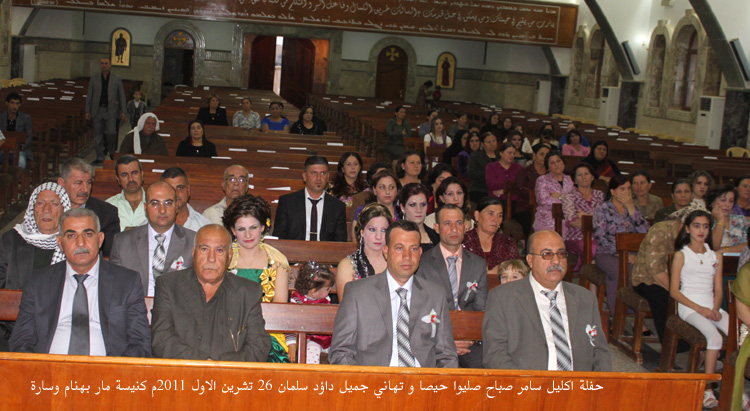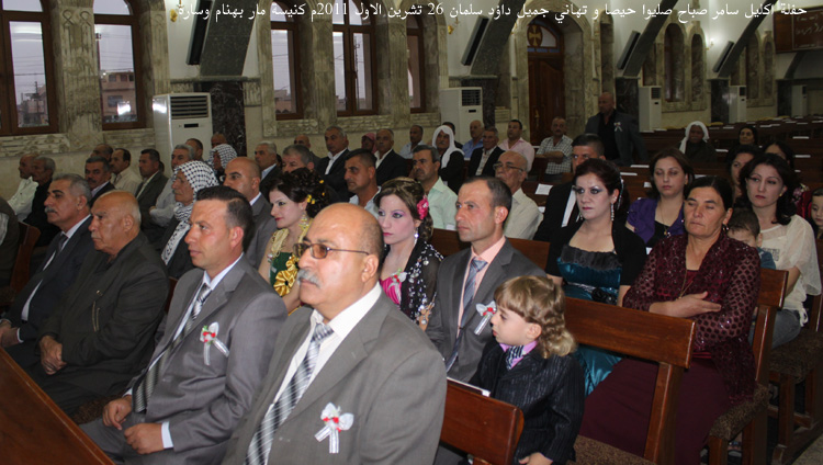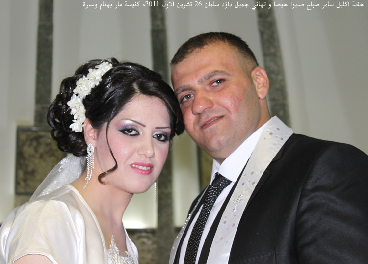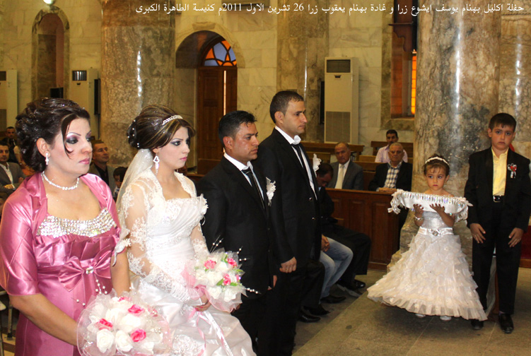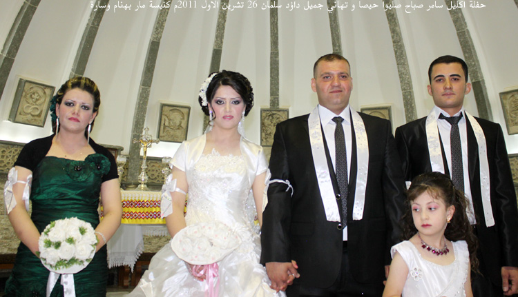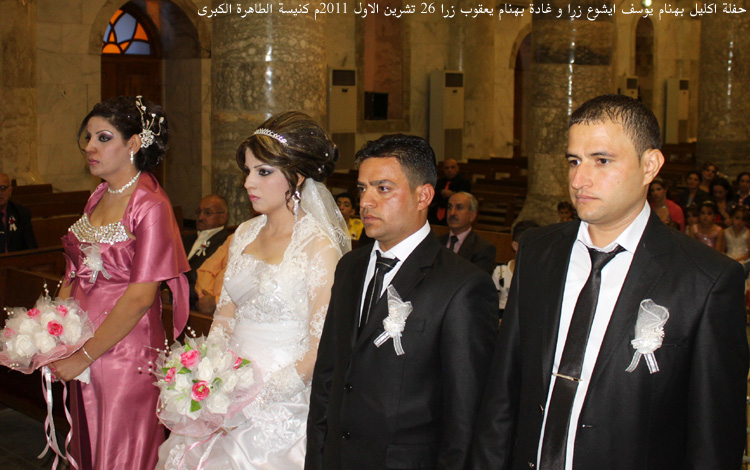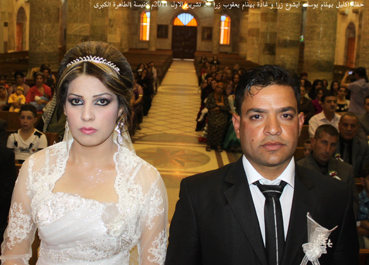 وأمام مذبح كنيسة مار بهنام وسارة، العروسان: