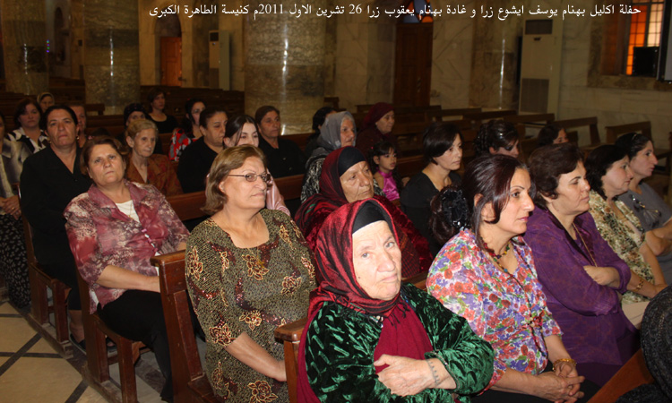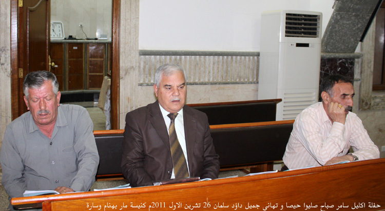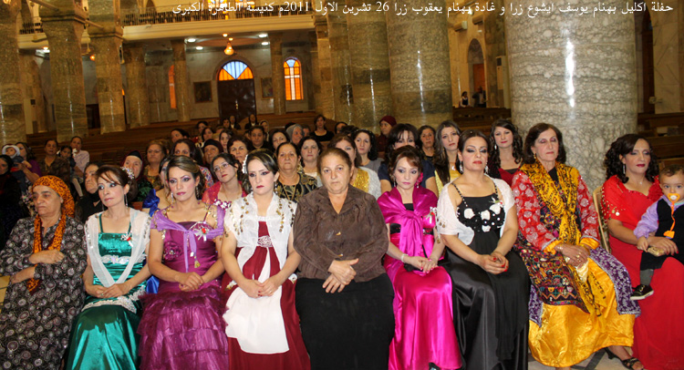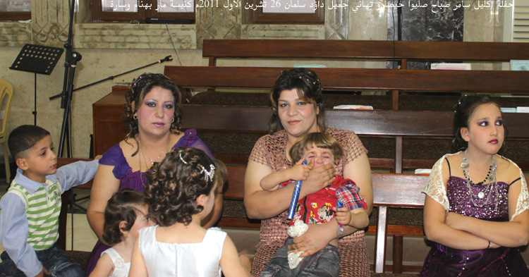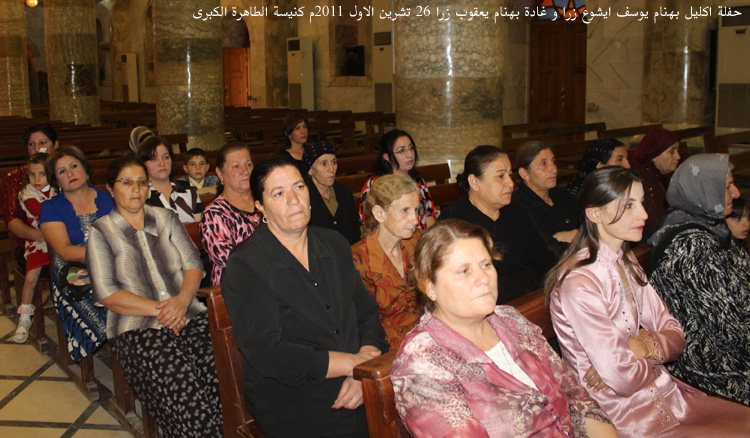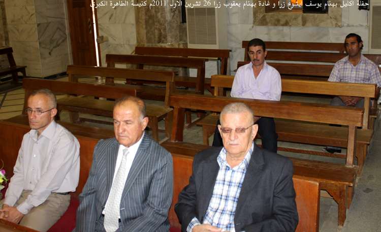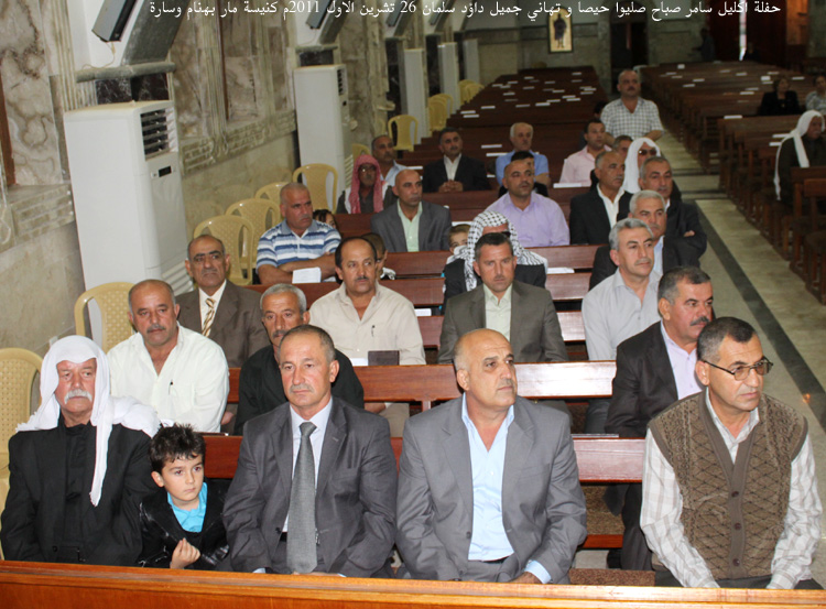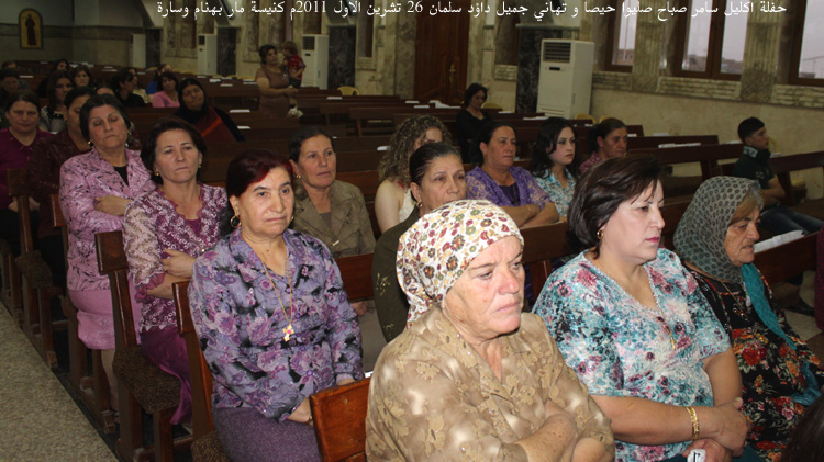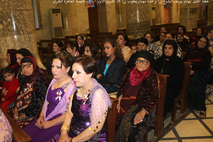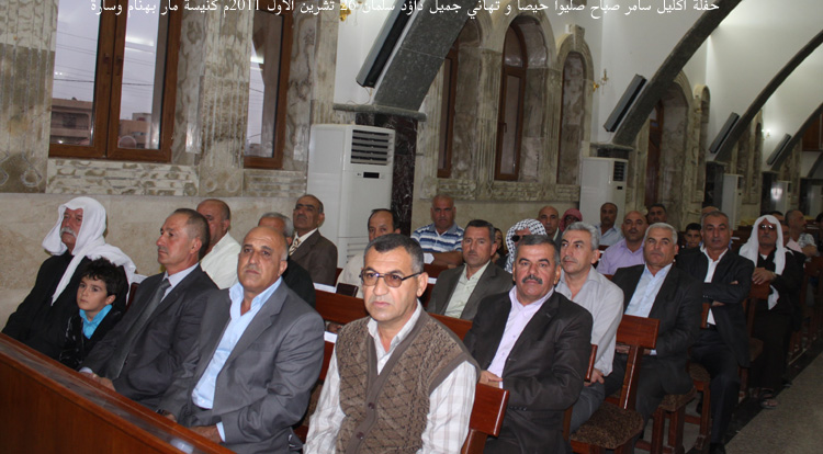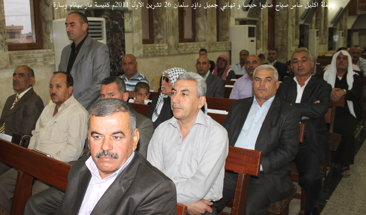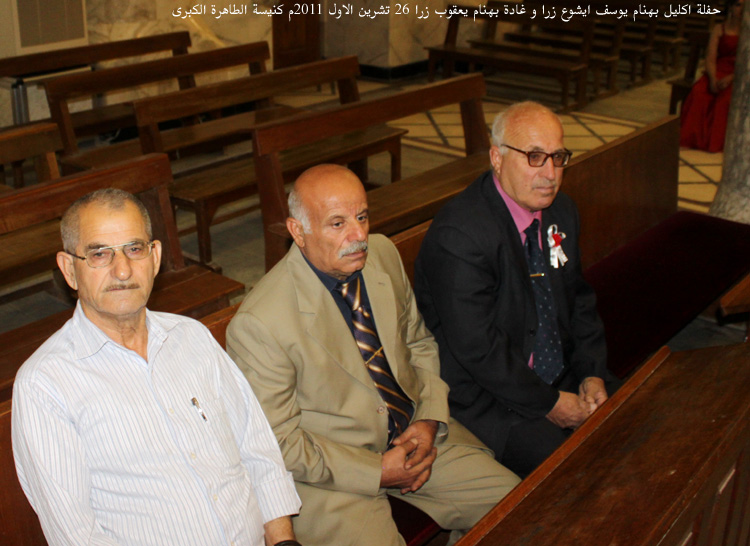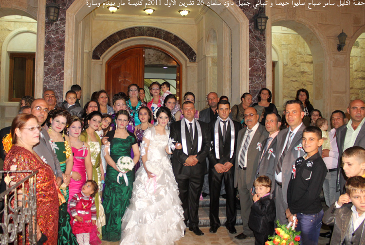 وأمام مذبح كنيسة مار بهنام وسارة، العروسان: