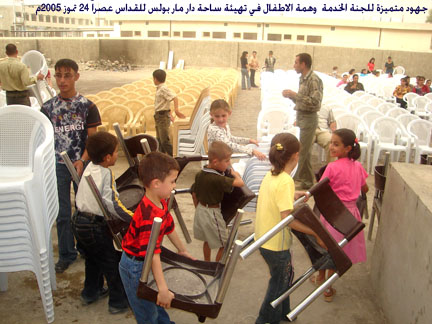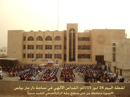 لقطة اليوم: (24 تموز 2005م) القداس الالهي في ساحة مار بولس (الصورة ملتقطة من على بناية المركز الصحي الجديد المجاور لدار مار بولس ــ لم يتم افتتاحه الى الان)