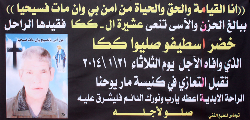 تعزي أسرة بغديدا هذا اليوم ذوي المرحوم وتتضرع إلى الرب قائلة