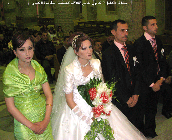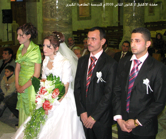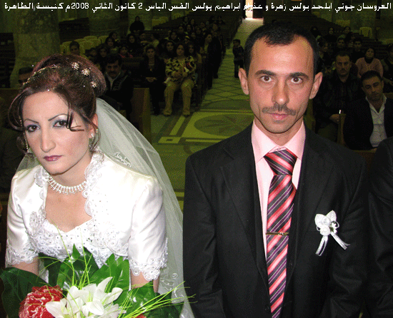 الاكاليل اقتبل سر الزواج المقدس عصر اليوم امام مذبح كنيسة الطاهرة الكبرى العروسان: جوني ابلحد بولس زهرة و عذراء ابراهيم يونس القس الياس